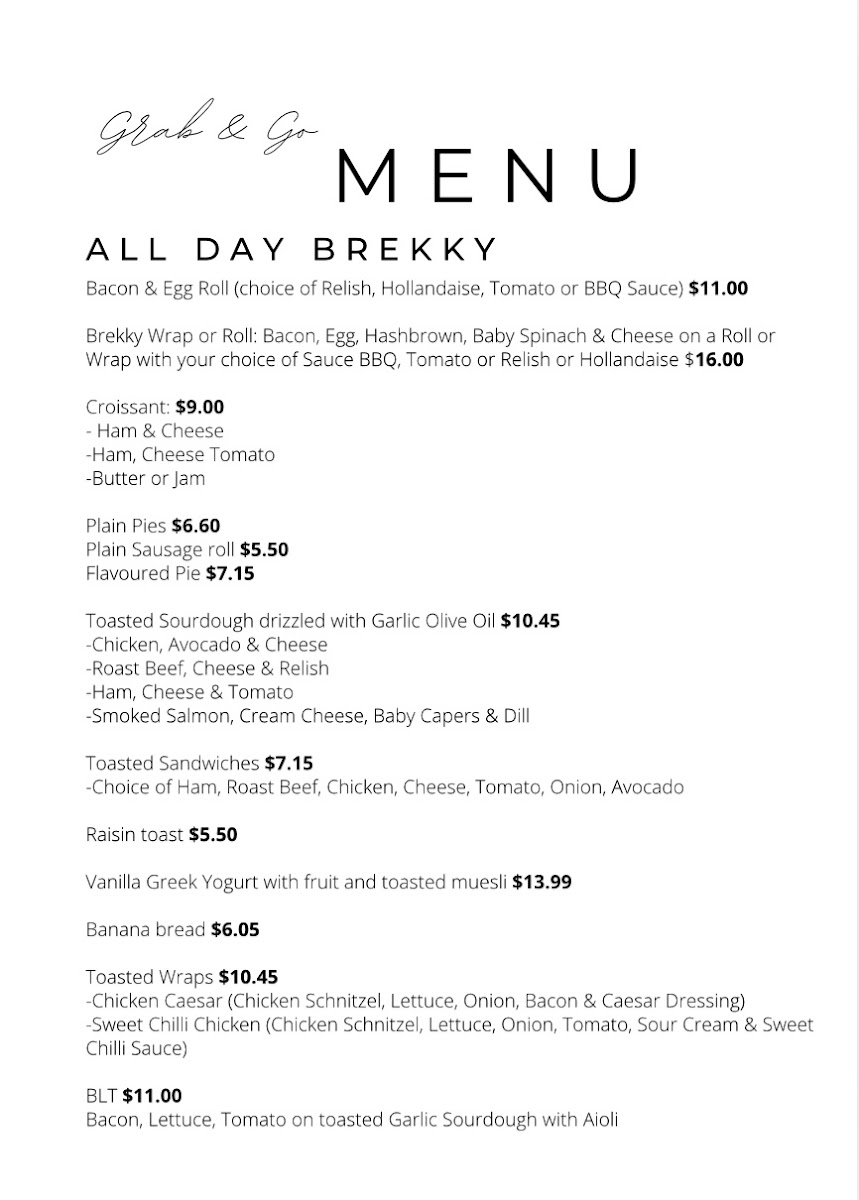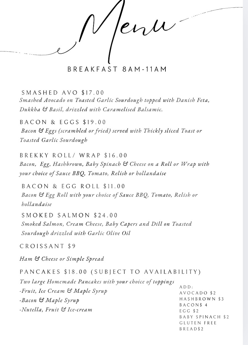 - All Day Brekky: Indulge in their Bacon & Egg Roll for a mere A$11.00, or choose the satisfying Brekky Wrap or Roll at A$16.00.
